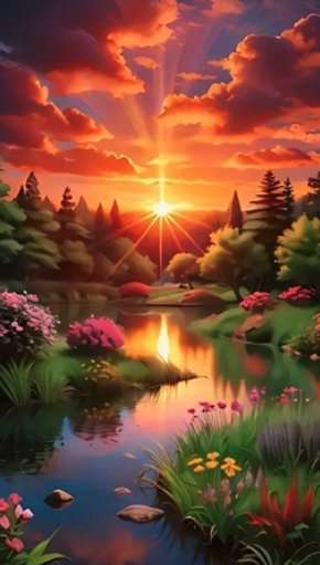 Diamantový obrázek západ slunce nad řekou, abstrakce 30 x 40 cm