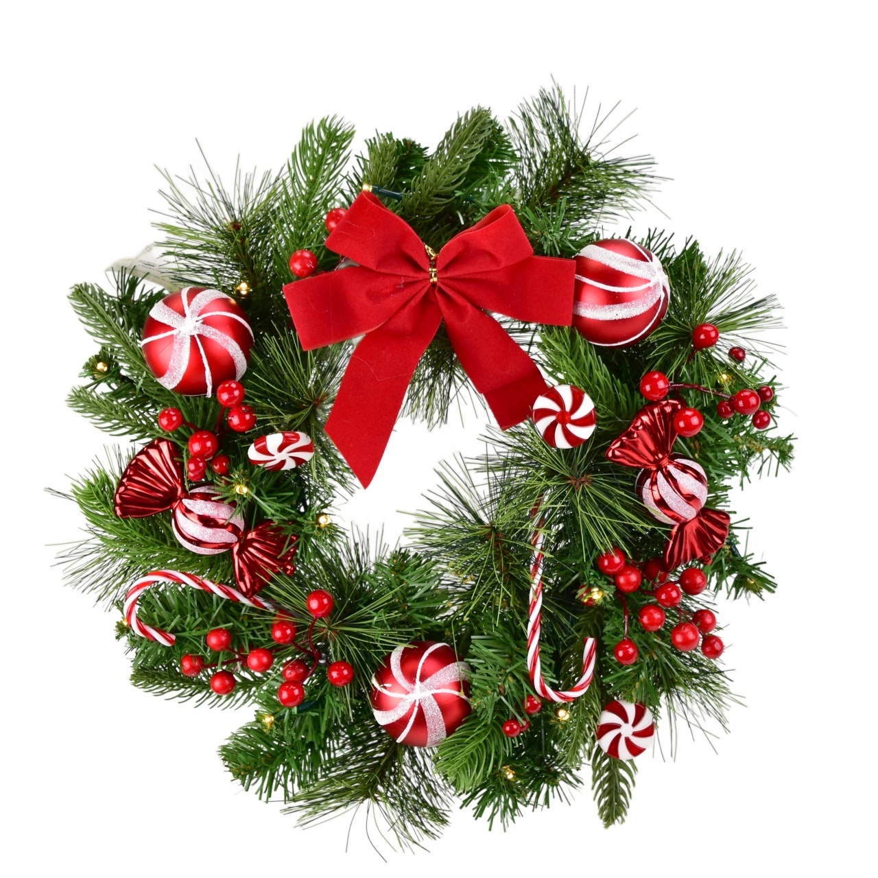 Věnec s červenou mašlí a Candy dekoracemi 15×LED Ø40 cm