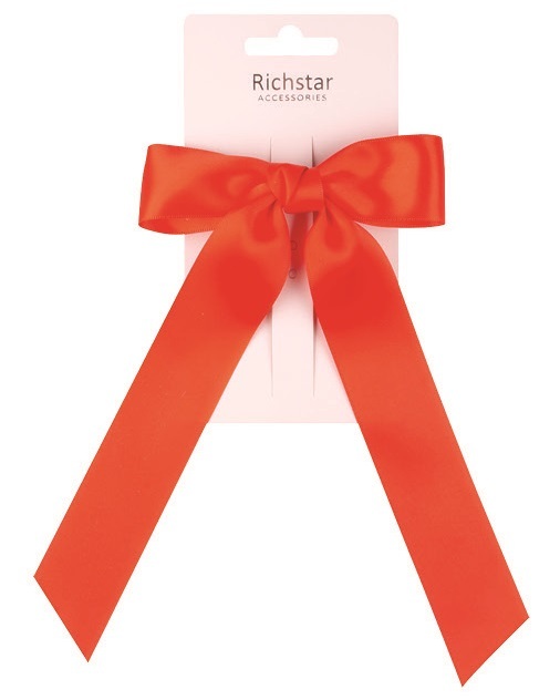 Mašle do vlasů na sponce červená 11,5 x 3,5 cm + 18 cm stuha