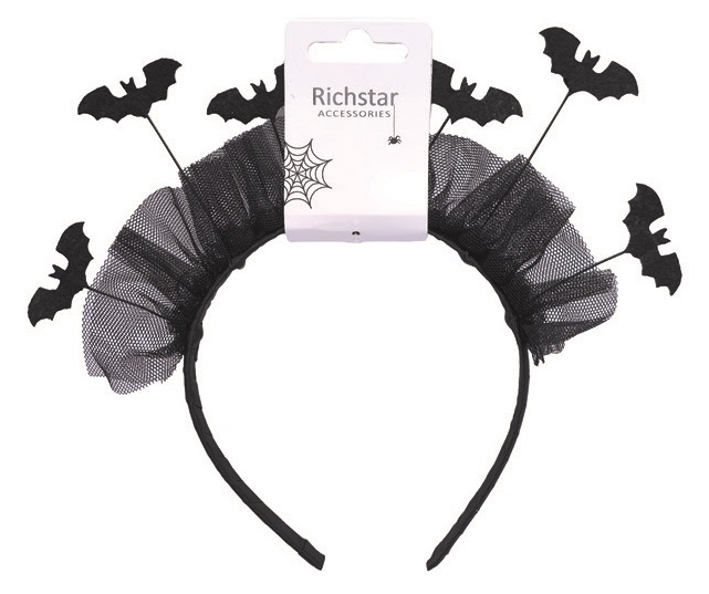 Čelenka do vlasů s netopýry černá, obvod 37 cm