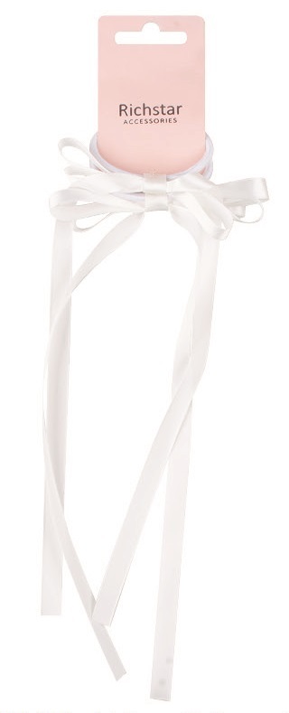 Mašle do vlasů na gumičce bílá 10,5 x 1 cm + 24 cm stuha, 2 ks