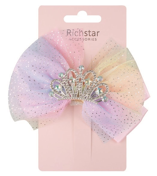 Sponka do vlasů - korunka s duhovou mašlí 12 x 10 x 3 cm