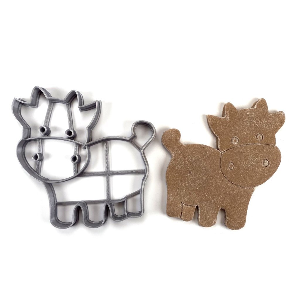 Farmou inspirované vykrajovátko kravičky vyrábíme pomocí 3D tisku za použití plastového materiálu PLA (materiál biologicky odbouratelný), odolný do 50°C, nevhodný do myčky na nádobí. Pro snadné ozdobení sušenky má naše vykrajovátku střední linie. Vhodné pro tvoření s těsty (na perníčky, sušenky,...