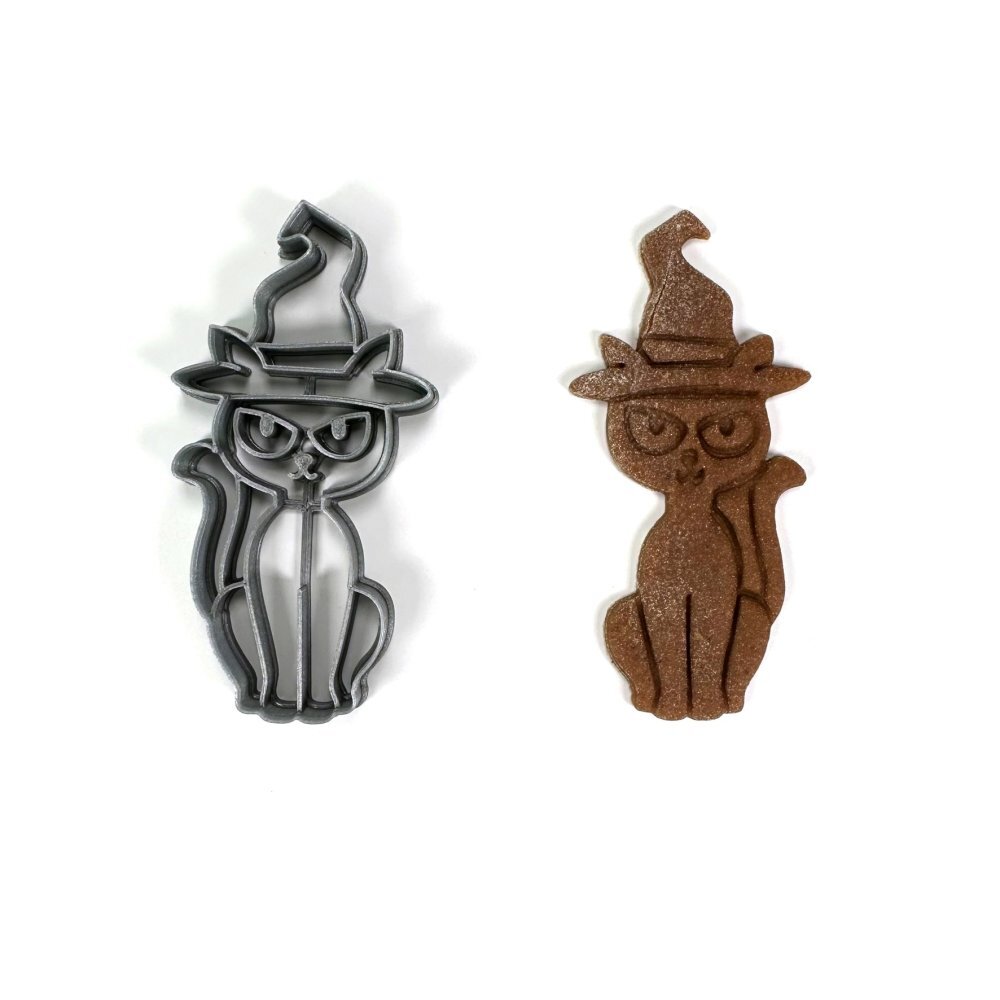 Vykrajovátko čarodějnické kočky pro vás zhotovujeme na 3D tiskárně, čili metodou 3D tisku, zpracováním plastového PLA materiálu, který je biologicky odbouratelný, odolný do 50°C a nevhodný do myčky na nádobí. Jednoduchá linie středu zvýrazní i ty nejmenší detaily a dále usnadňuje zdobení a...
