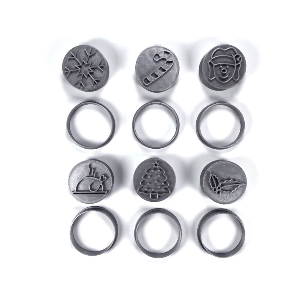 Plastová razítka vyrábíme inovativním 3D tiskem, z plastového materiálu PLA (materiál biologicky odbouratelný), odolný do 50°C a nevhodný do myčky na nádobí. Tvořítka jsou složena ze dvou částí: ostrý obvodový kruh vykrojí těsto a razítko s obrázkem detailně přenese konkrétní motiv do hmoty. Mezi...