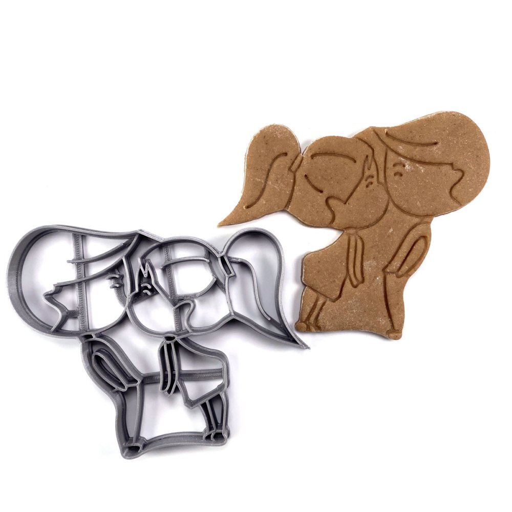 Valentýnské vykrajovátko dívky a chlapce, kteří si dávají pusu. Vykrajovátko je zhotoveno na 3D tiskárně, z materiálu PLA plast (materiál biologicky odbouratelný), odolný do 50°C, nevhodný do myčky na nádobí. Vhodné pro tvarovací hmoty jako je těsto, fondán, marcipán, plastelína, Play-Doh,...