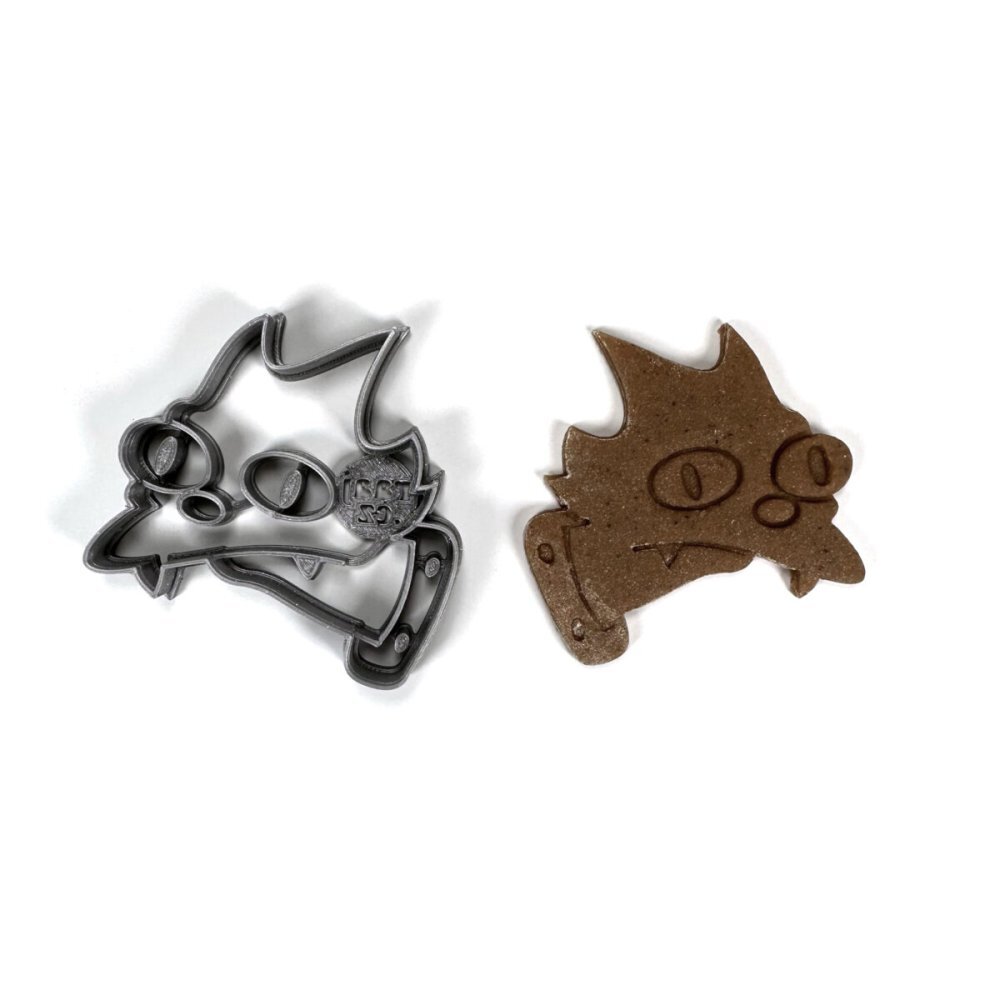 Vykrajovátko známého kočičího mazlíka pro vás zhotovujeme na 3D tiskárně, čili metodou 3D tisku, zpracováním plastového PLA materiálu, který je biologicky odbouratelný, odolný do 50°C a nevhodný do myčky na nádobí. Jednoduchá linie středu zvýrazní i kočičí zuby a dále usnadňuje zdobení a malování...