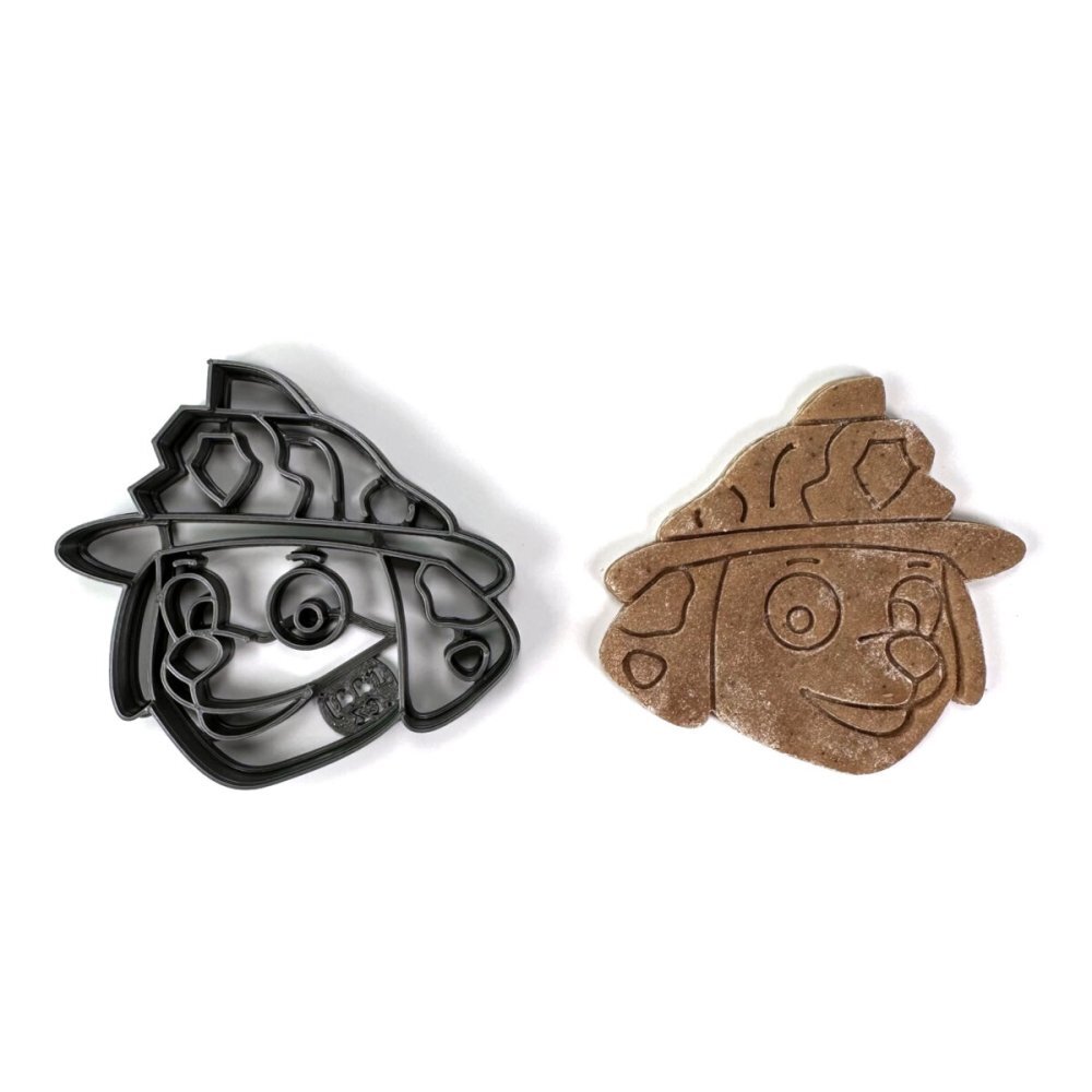 Inovativní technologií 3D tisku bylo navrženo a zhotoveno vykrajovátko psí hlavy. Použit byl plastový materiál PLA (biologicky odbouratelný), odolný do 50°C, nevhodný do myčky na nádobí. Díky otisku středních linií do těsta bude zřetelný obličej i helma a její charakteristické logo patrné...