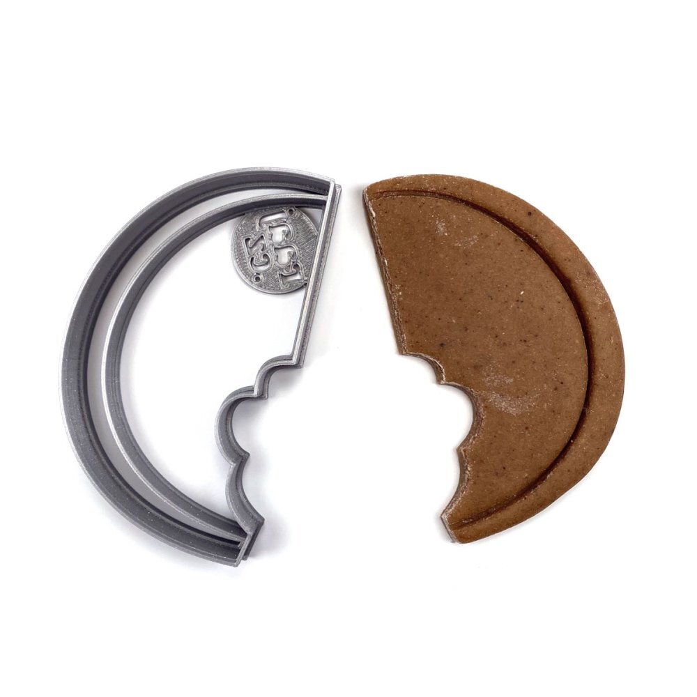 Rozšiřující se technologií 3D tisku vytváříme vykrajovátko rozkrojeného melounu z plastového materiálu PLA (biologicky odbouratelný), odolný do 50°C, nevhodný do myčky na nádobí. Středová linie vám umožní otisklý obrázek lehce nazdobit. Pro naše vykrajovátko najdete využití u hmot jako jedlá...