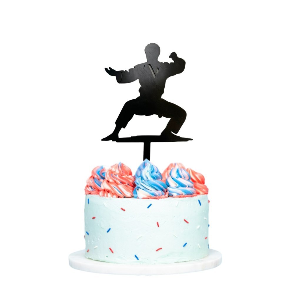 Karatistu v postoji vyrábíme jako zápich do dortu na 3D tiskárně z materiálu PLA plast (materiál biologicky odbouratelný), odolný do 50°C, nevhodný do myčky na nádobí. Před prvním použitím a vždy po použití zápich omyjte jarovou vodou a důkladně osušte. Není určeno pro děti do 3 let, hrozí odlomení malých částí.