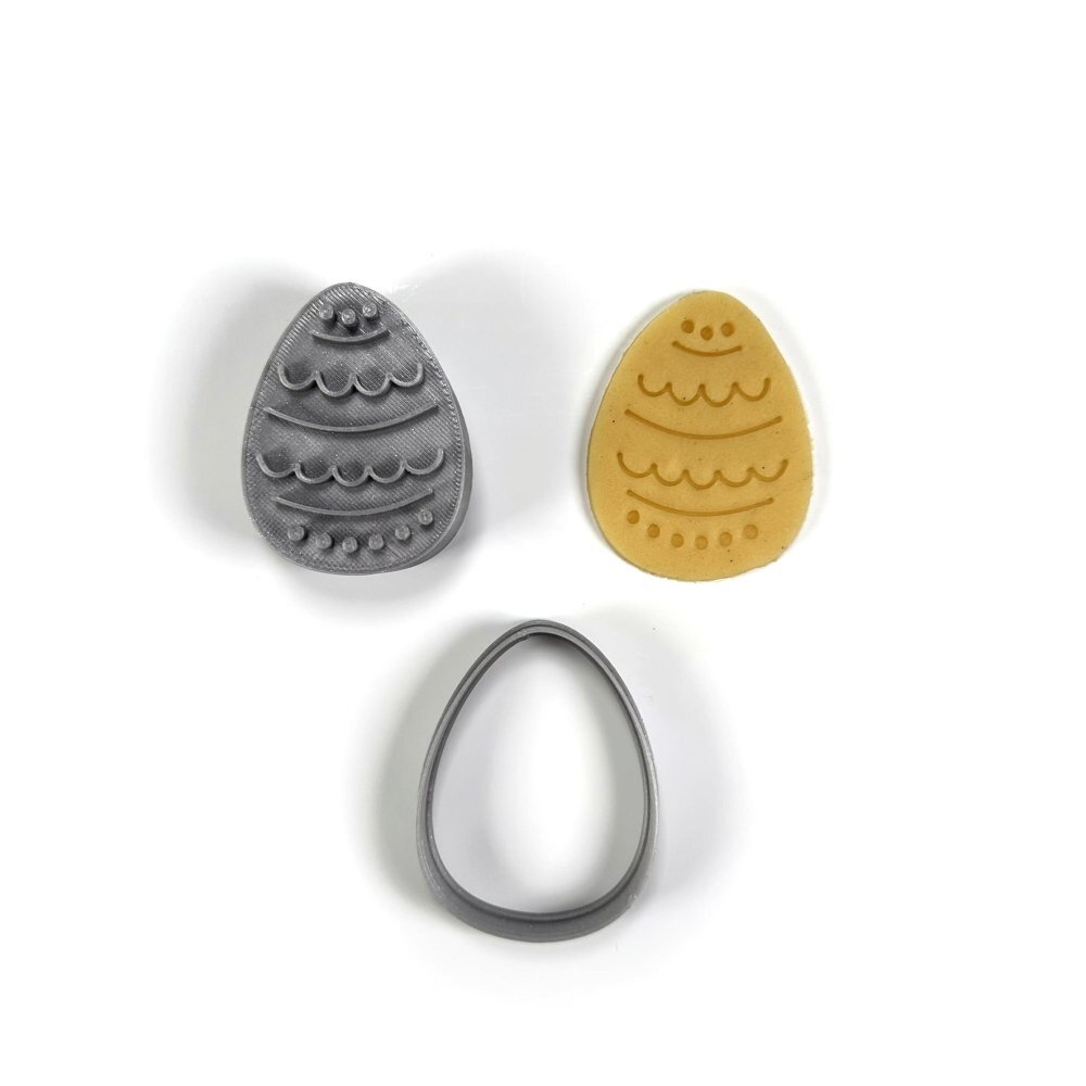 Plastové razítko z biologicky odbouratelného materiálu PLA vytváříme pomocí 3D tiskáren. Materiál je odolný do 50°C, nevhodný do myčky na nádobí. Práce s razítkem je snadná, ostré vejce umožňuje přesné vykrojení tvaru do těsta a razítkem pak vtisknete požadovaný motiv. Doporučujeme pro pečení...