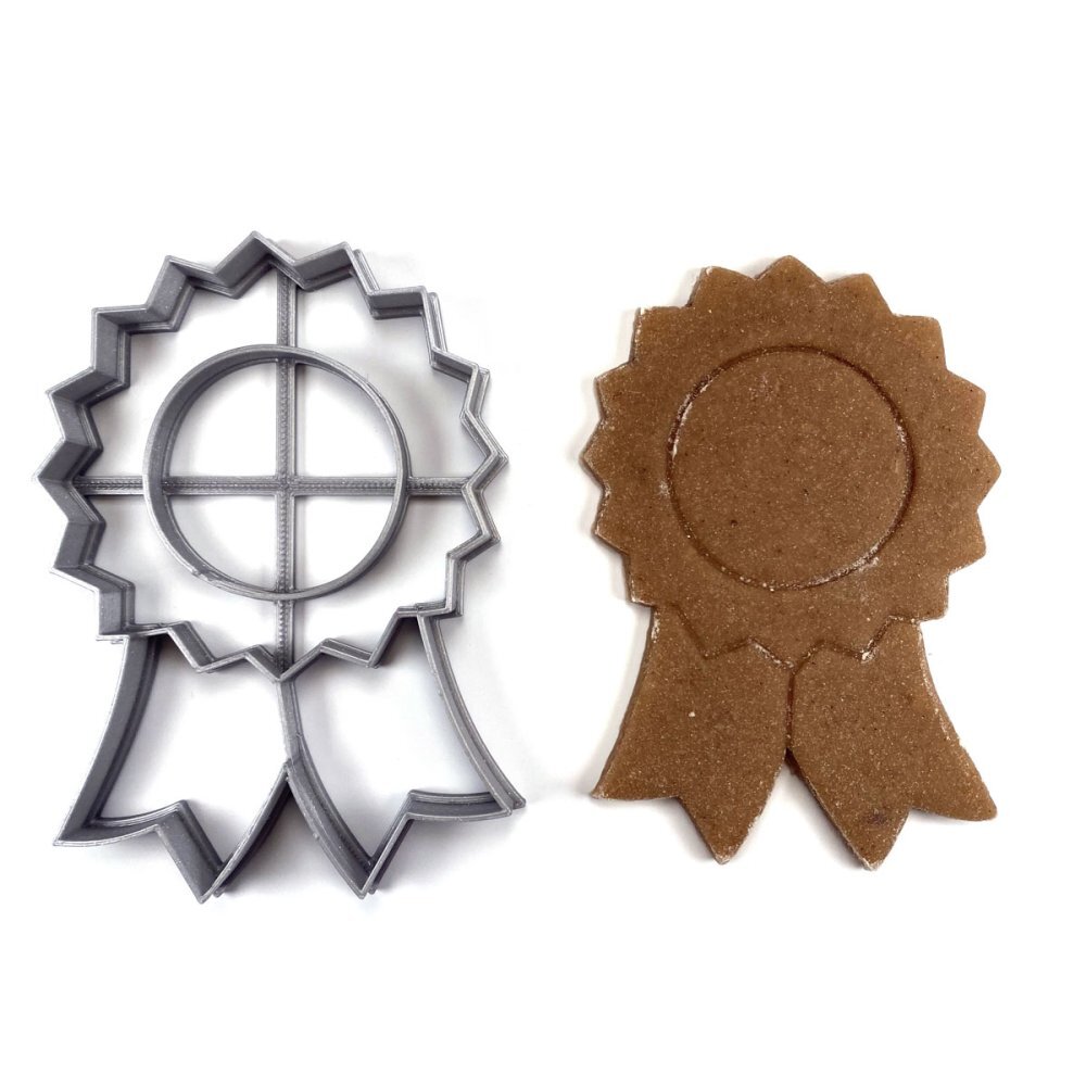 Velmi povedené vykrajovátko oceňovací stuhy (flot) se vyrábí na 3D tiskárně, z materiálu PLA plast (materiál biologicky odbouratelný), odolný do 50°C, nevhodný do myčky na nádobí. Díky otisku středních linií v těstě se dá výtvor snadno nazdobit. Vhodné pro hmoty jako je potravinové těsto, fondán,...