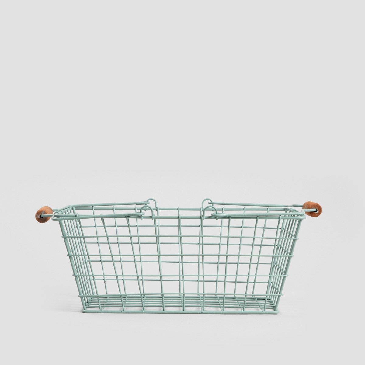 Praktyczne drewniane uchwyty dla wygody użytkowaniaIdealny do przechowywania akcesoriów i drobiazgówKoszyk z uchwytami zielony 35x21 cmDodaj swojej przestrzeni stylu dzięki koszykowi SELIA. Jego ażurowa metalowa konstrukcja w pastelowej zieleni łączy funkcjonalność z estetyką, nadając wnętrzu...