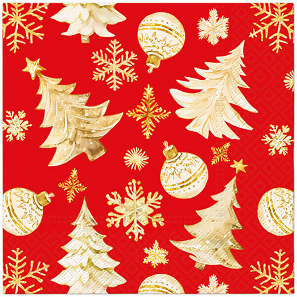 Ubrousky PAW Dekor L (20ks) Golden Christmas Tree red
