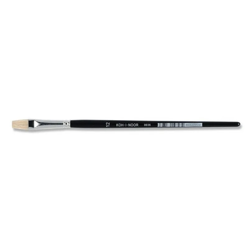 Plochý školní štětec pro školní účely. Plochý štětec č. 12, dřík černě lakovaný, toulec chromovaný. Dřík dřevěný, toulec kovový (stříbrný), vlas „prase“. Velikost: 12, šířka vlasu: 10 mm, délka vlasu: 16 mm, délka toulce: 43 mm, délka dříku: 175 mm. Celková délka štětce je 234 mm.