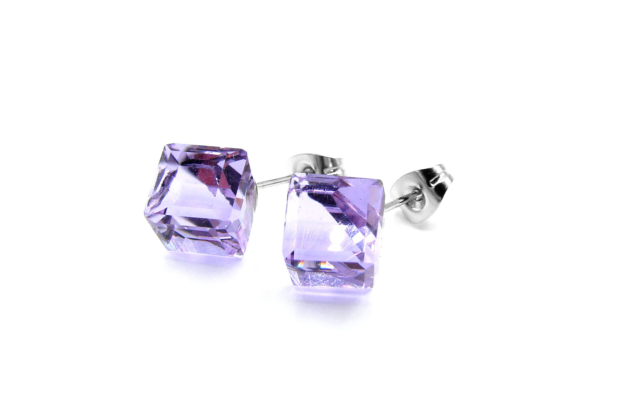 Steel Jewelry Náušnice fialové kostky z chirurgické oceli NS250129