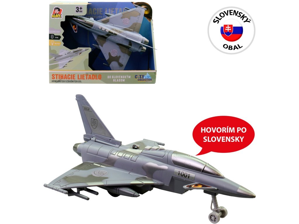 Stíhací letadlo na setrvačník, SK, na baterie se světlem a zvukem, 27 x 20 x 11 cm