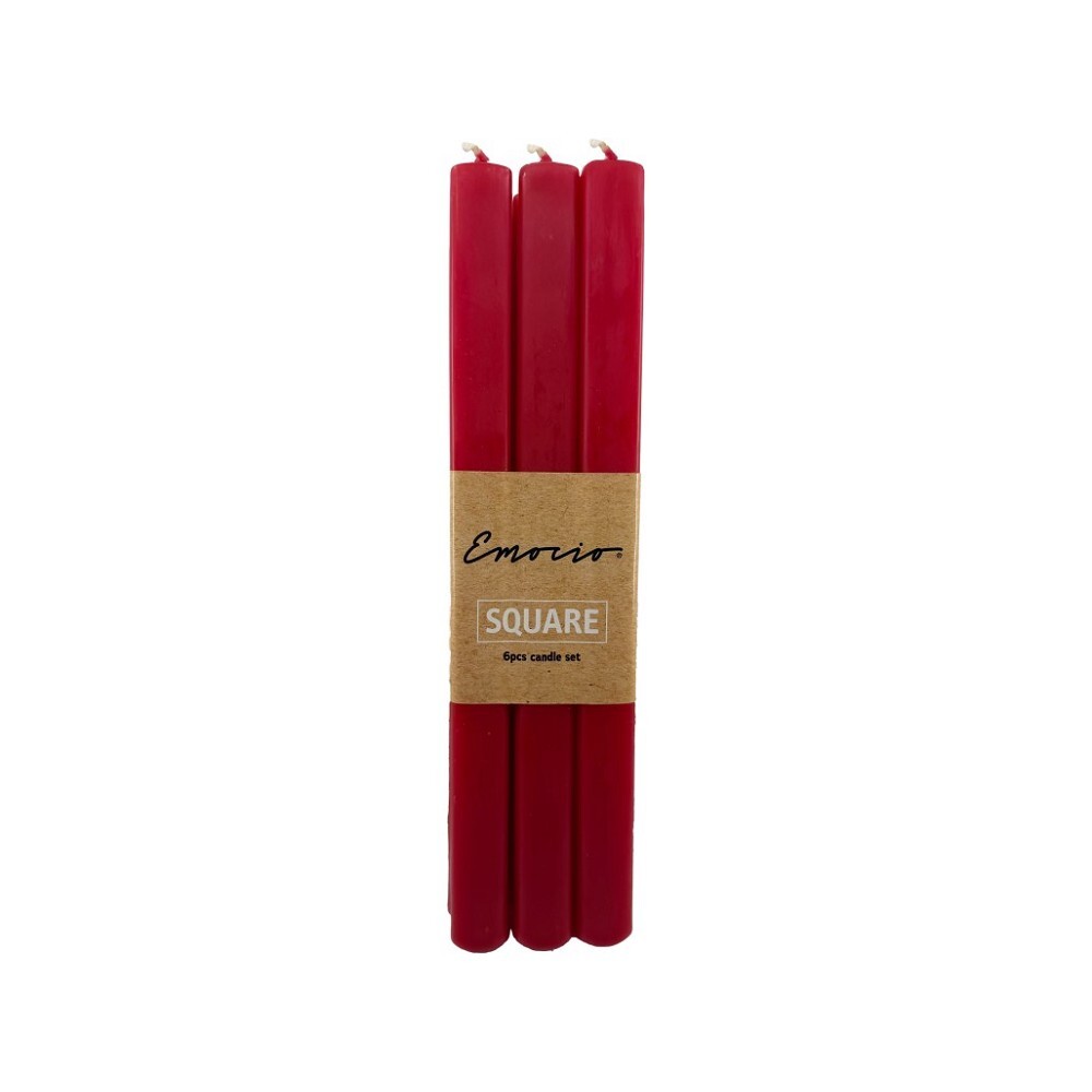 Emocio - svíčka hranol 18 × 240 mm, červená - 6 ks