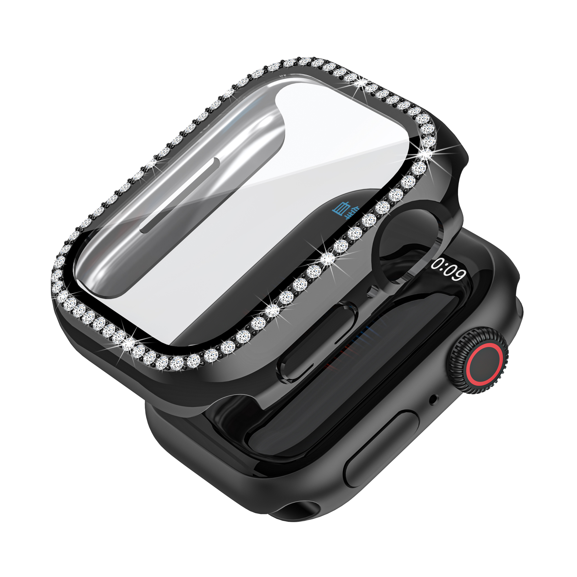 Ochranné kamínkové pouzdro se sklíčkem pro Apple Watch 40mm,Černý