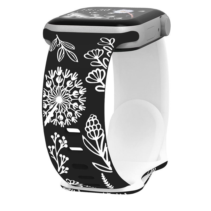 Řemínek gravírované pampelišky pro Apple Watch 38/40/41/42(S10)mm,Černo-Bílá