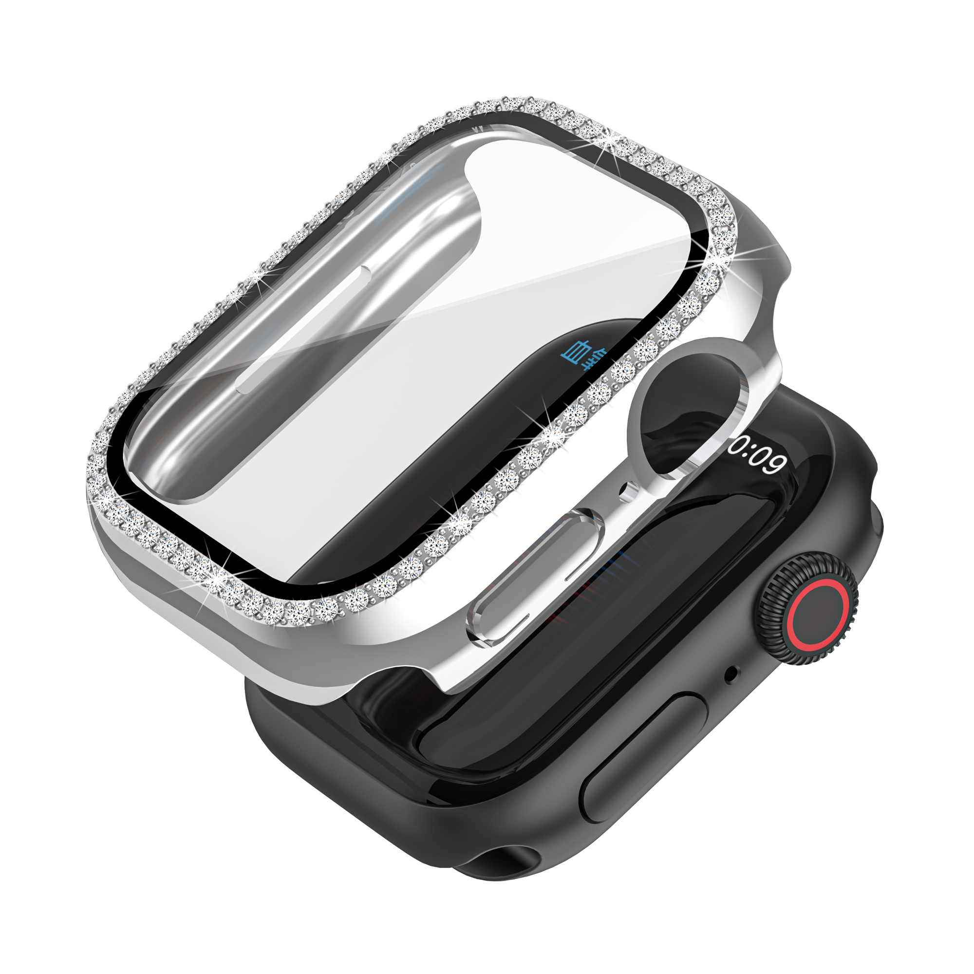 Ochranné kamínkové pouzdro se sklíčkem pro Apple Watch 40mm,Stříbrný