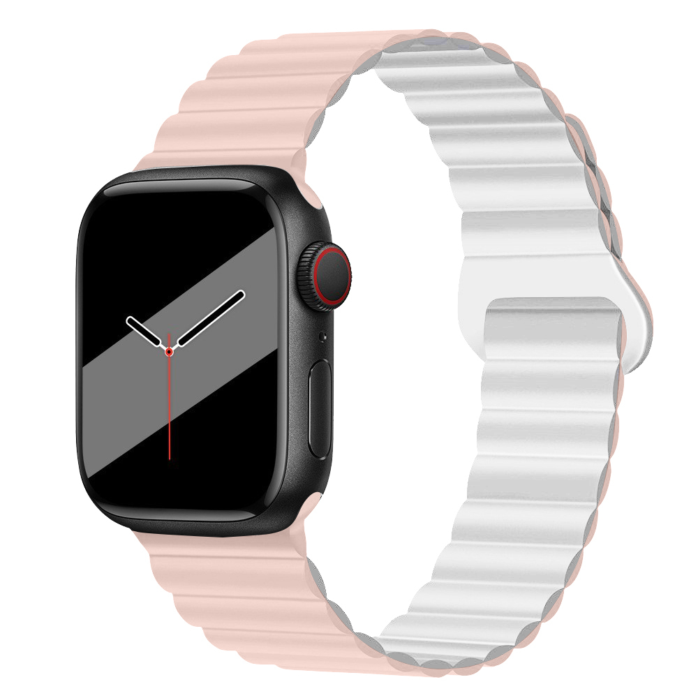 Silikonový magnetický řemínek pro Apple Watch 38/40/41/42(S10)mm,Růžovo-Bílá