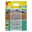 - czyste, dokładne cięcie po krzywych- zastosowanie: sklejka, płyty stolarskie, płyty wiórowe oklejone tworzywem, laminat, parkiet- materiał: HCS- forma uzębienia: grzbiet stożkowy- odległość między zębami: 1,35 mm- długość listwy zębatej: 50 mm- długość całkowita: 75 mm- ilość w opakowaniu: 5...