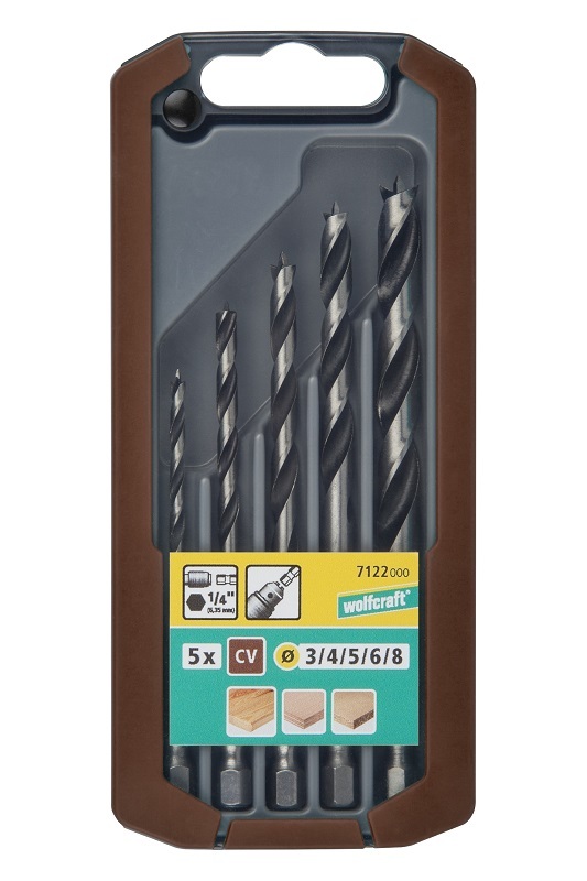 Zestaw wierteł do drewna CV 3 - 8 mm Wolfcraft, trzpień 6-kąt