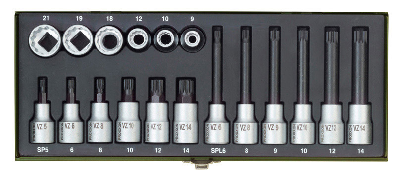 Profesjonalny zestaw nasadek XZN, 18-części. Zestaw zawiera nasadki 1/2" w rozmiarach od 5 – 14 mm w wersji normalnej (55 mm) i długiej (100 mm), oraz nasadki 12-kątne w rozmiarach 9 – 21 mm.PROXXON – dla profesjonalistów!Klucze i narzędzia ręczne PROXXON produkowane są w jednej z największy...