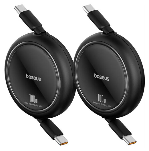 Navíjecí kabel Baseus Free2Pull USB-C/USB-C s nastavitelnou délkou až 2m 100W černý (balení po 2ks)