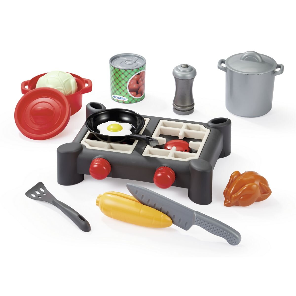 Dvouplotýnkový vařič se sadou hrnců s pokličkami, rendlíky, pánvičkou, potravinami a dalším příslušenstvím. Sada obsahuje 14 ks. Rozměry variče 21 x 17 x 5 cm. prečítať celé