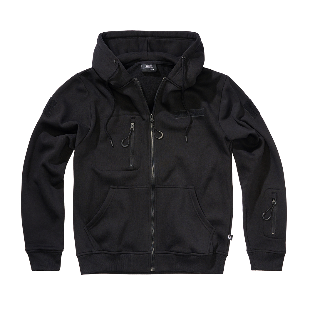 Mikina s kapucí německého výrobce outdoorového oblečení Brandit.V moderním a stylovém designu.Vlastnosti:• zapínání na pevný zip• elastické žebrované manžety v pase a na koncích rukávů• "klokaní" kapsa rozdělená zipem na 2 části• kapsa na zip na hrudi• kapsa na zip rukávu• Velcro panel pro nášivku na hrudi