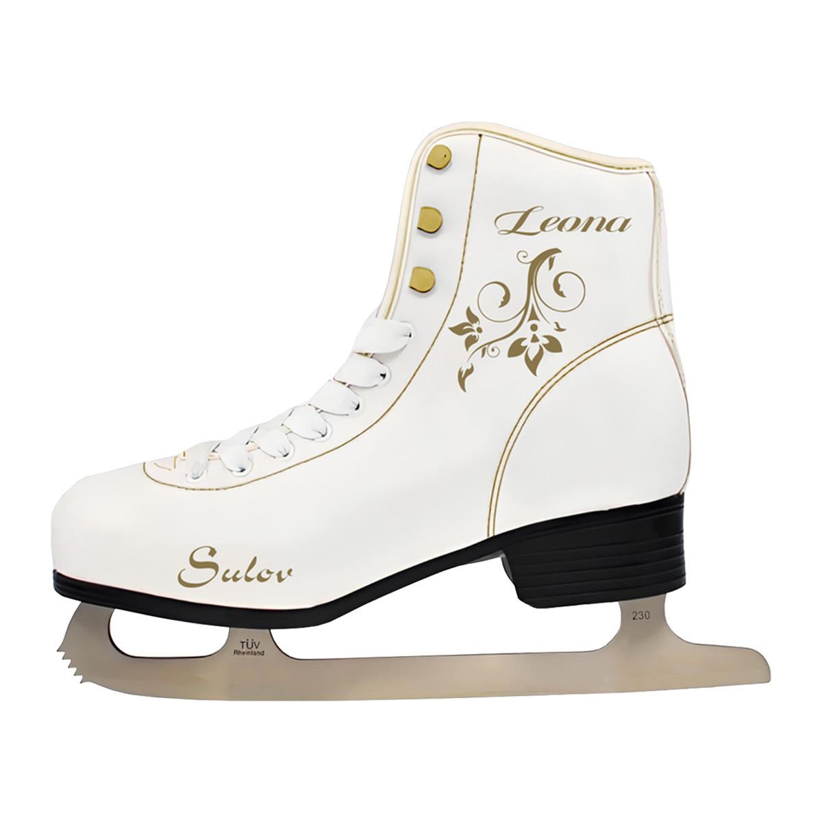 Dámská zimní brusle s jemným potiskem pro začátečníky. Vyrobená ze syntetické kůže. Zapínání brusle je na klasické šněrování. Nerezový nůž.vnější materiál: cold resistant PVC (syntetická kůže)vnitřní materiál: VELVET nylonanatomická bandážnerezový krasobruslařský se zoubkyUrčení: začínající...