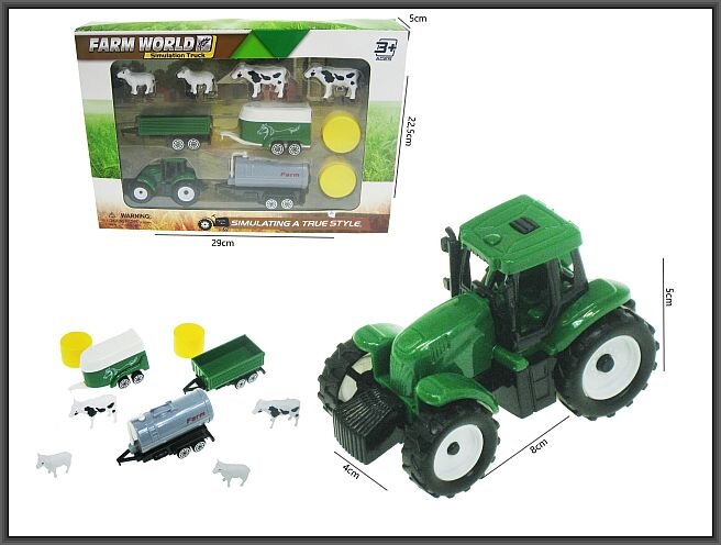 Traktor 16cm 3 przyczepy akcesoriapakowanie 24/48 prečítať celé