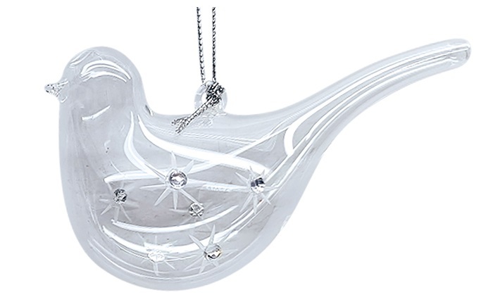 Pták skleněný s vločkami, 11 × 4 × 2,5 cm Elegantní skleněná ozdoba ve tvaru ptáčka s jemným motivem vloček a drobnými třpytivými kamínky. Díky závěsnému očku je ideální na vánoční stromeček, zimní aranžmá nebo jako decentní dekorace do interiéru. Vlastnosti: Rozměry: 11 × 4 × 2,5 cmPrůhledné sklo s dekorativním motivem vločekDrobné třpytivé kamínky pro luxusní vzhledLehký a snadno zavěsitelnýVhodný pro vánoční a zimní dekorace