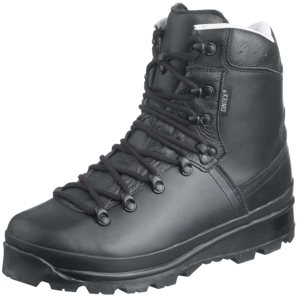 Vodě odolné horské boty používané BW armádou s laminátovou membránou.Vlastnosti:• 8 šněrovacích děr• záhyb v patní části• nepromokavá a prodyšná membrána (polytetraflóretylen) zajišťuje v botě příjemné klima• ventilační otvory pro optimální cirkulaci vzduchuMateriál: svršek černá, hlazená, vodotěsná kůže, membrána laminát; podrážka protiskluzová, drsněná profilovaná guma (odolná oleji a benzínu)