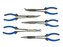 Sada pěti kusů dlouhých kleští, rovných, zahnutých a kulatých pro různorodé využití. Vyrobeno z CrV oceli, rukojeť je vyrobena z odolného plastu, navíc potažena vrstvou protiskluzové pryže zajišťující pevný a pohodlný úchop.