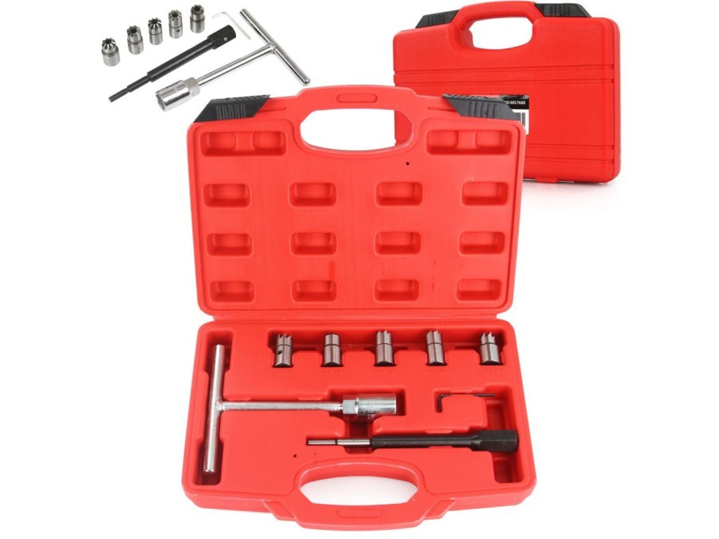 Sada fréz na sedla vstřikovačů, 8ks MAR-POLSada obsahuje Frézy o rozměrech:15mm plochá fréza - univerzální17mm, plochá fréza - DELPHI I BOSCH ( BMW , PSA , RENAULT, FORD)17mm úhlová fréza - FIAT, IVECO, FORD19mm, plochá fréza - BOSCH (MERCEDES CDI)19mm, úhlová fréza - FIAT, IVECOVodící trn na...