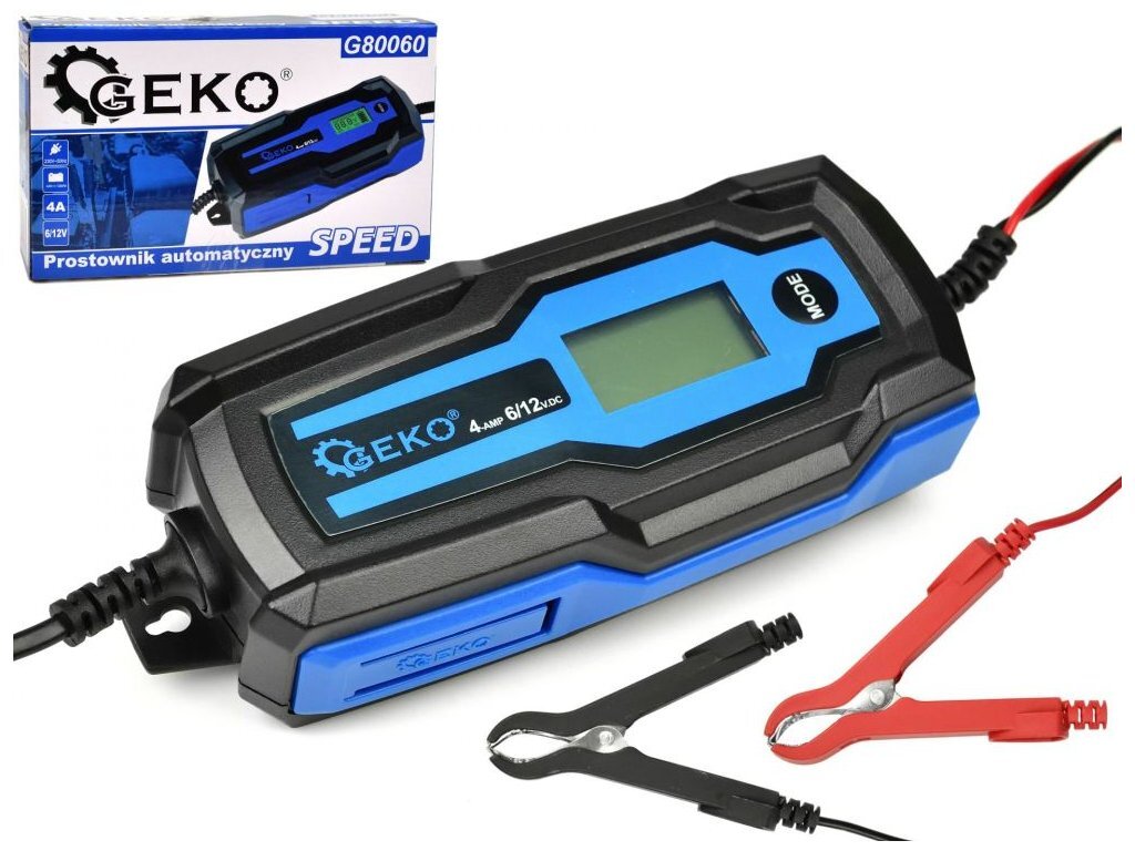 Automatická nabíječka baterií Speed 6/12V 4A GEKOTechnická specifikace Automatická nabíječka baterií, určená k nabíjení baterií motocyklů, osobních automobilů, mopedech, vodních skútrech, jacht a dalších vozidel.Zařízení je určeno k nabíjení AGM, GEL, 6V / 12V a olověných (pouze 12 V)...