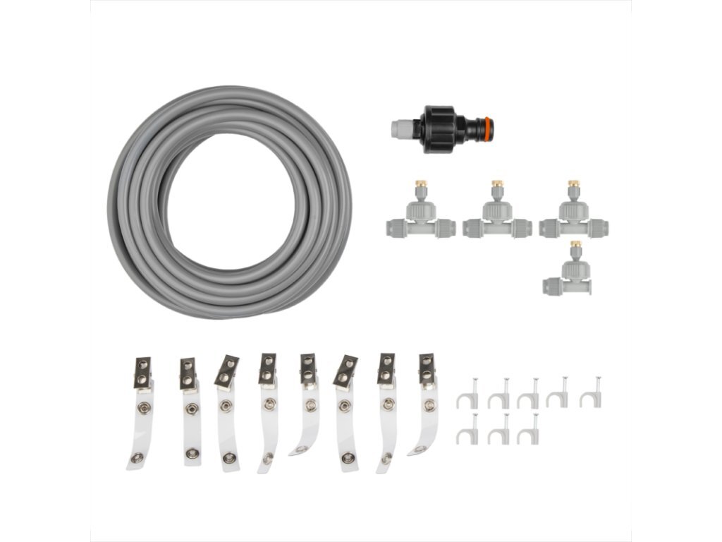 Zahradní vodní mlha 6m WHITE LINEZahradní vodní mlha, která vás příjemně ochladí na terase vašeho domu, restaurace či kavárny, nebo na vaší zahradě. Díky systému pěti nerezových nastavitelných trysek ochladíte vzduch v parném létě o 10°C až 12°C. Připojení je možné přímo na zahradní hadici....