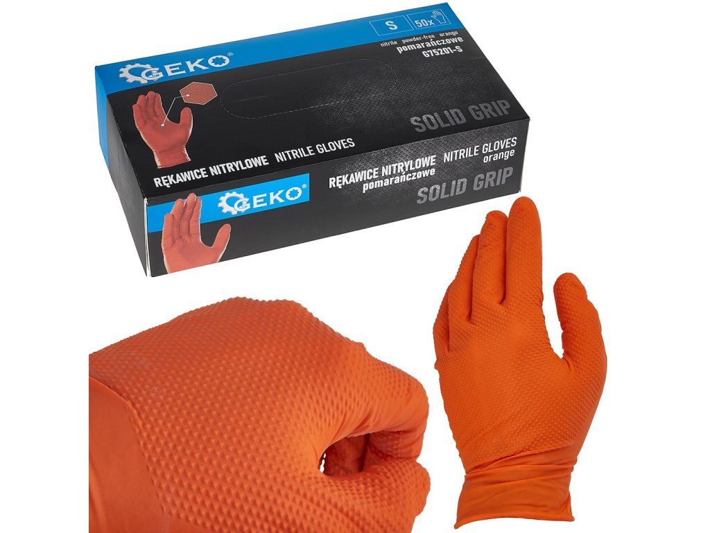 Nitrilové rukavice Solid Grip 3D, pevné, odolné chemikáliím, 50 ks, oranžové, velikost S - GEKO