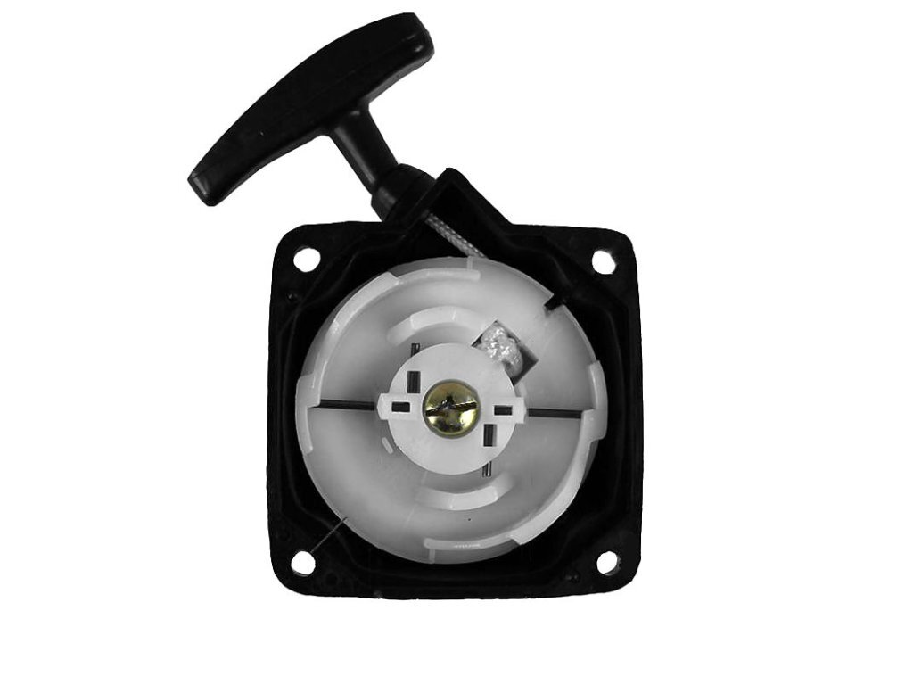 Náhradní startér k motorové koseStartér křovinořezu je vhodný pro motory o objemu 40 - 50 cm3 i pro většinu křovinořezů vyrobených v Číně.PARAMETRYMontáž na 4 šroubyRozteč šroubů (horizontální / vertikální) - 66 mmRozteč šroubů (diagonálně) - 94 mmPrůměr mechanismu (vnitřní bílá část) - 33,5...