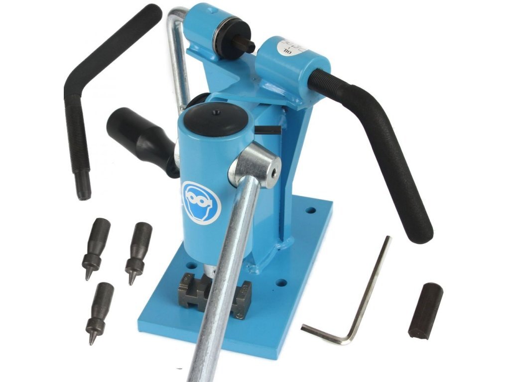 Roznýtovačka: mechanicky vytlačí nýt z řetězového článku, čímž umožní jeho rozpojení bez poškození okolních dílů.