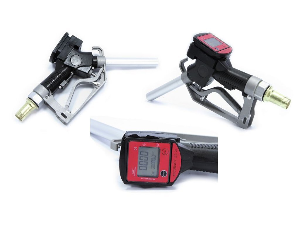Moderní čerpací pistole vybavená elektronickým průtokoměrem (s přesností +/- 0,2%) určená pro nízkoviskozní kapaliny a použití v: