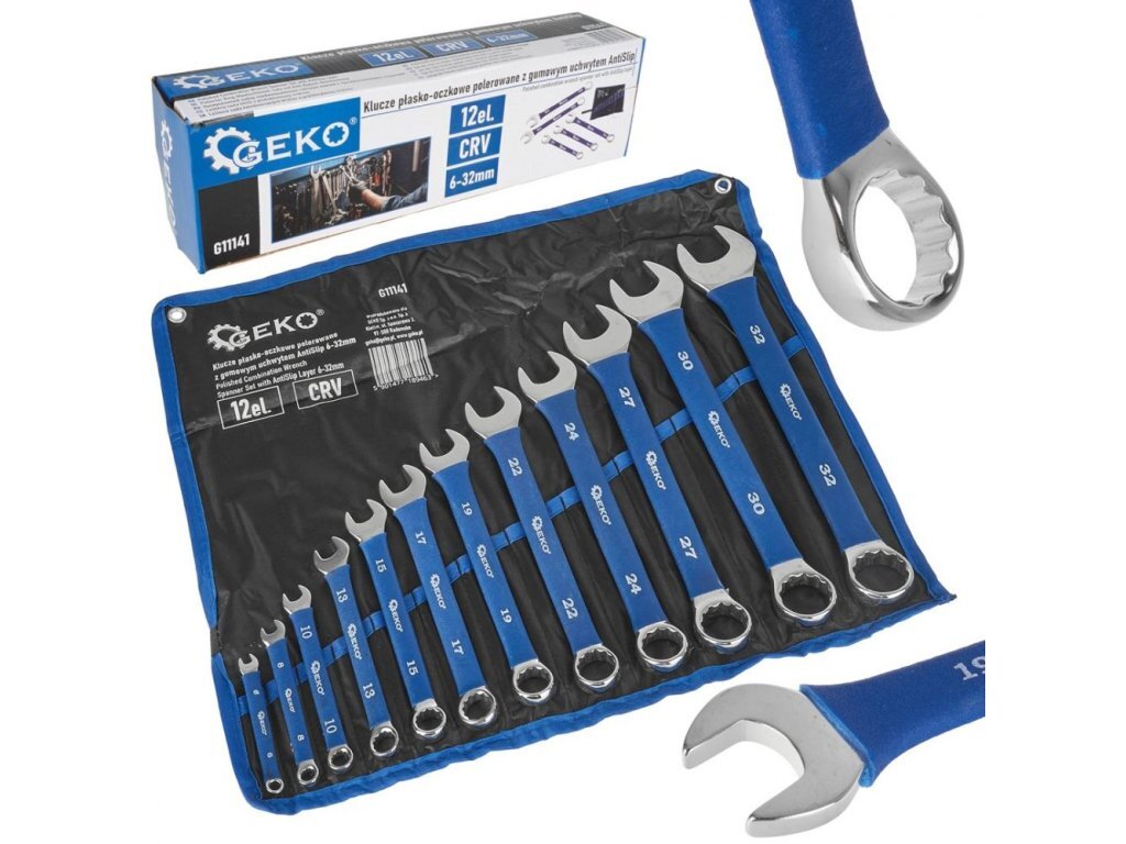 Klíče očkoploché 6 - 32 mm, s pogumovanou rukojetí, sada 12 ks GEKO