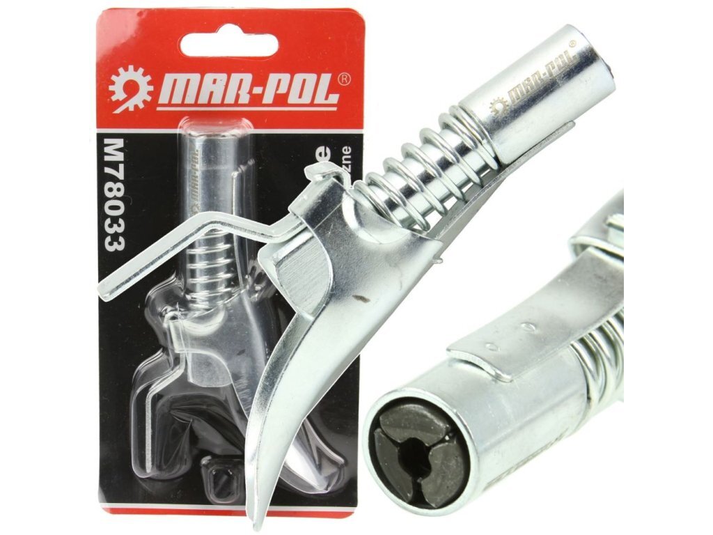 Koncovka maznice, samosvorná, typ-II - MAR-POLSamosvorná mazací koncovka umožňuje rychlé a snadné mazání dílů během údržby bez zbytečné ztráty tuku. Samosvorný mechanismus umožňuje mazání bez nutnosti přidržovat a tlačit špičku proti mazací koncovce.Koncovka je vyrobena z galvanizované slitiny...