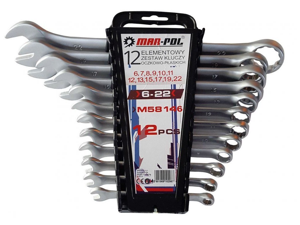 Klíče očkové-otevřené 12ks 6-22mm CrV MAR-POL, klip