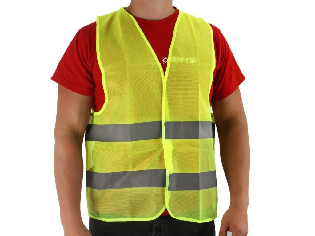 Výstražná vesta, zapínání na suchý zip. Ideální bezpečnostní prvek v silničním provozu určený k nošení přes svrchní oděv. Velikost je univerzální. Nedílná součást pro bezpečnější práci na pracovišti. Vhodné i jako povinná výbava do auta.