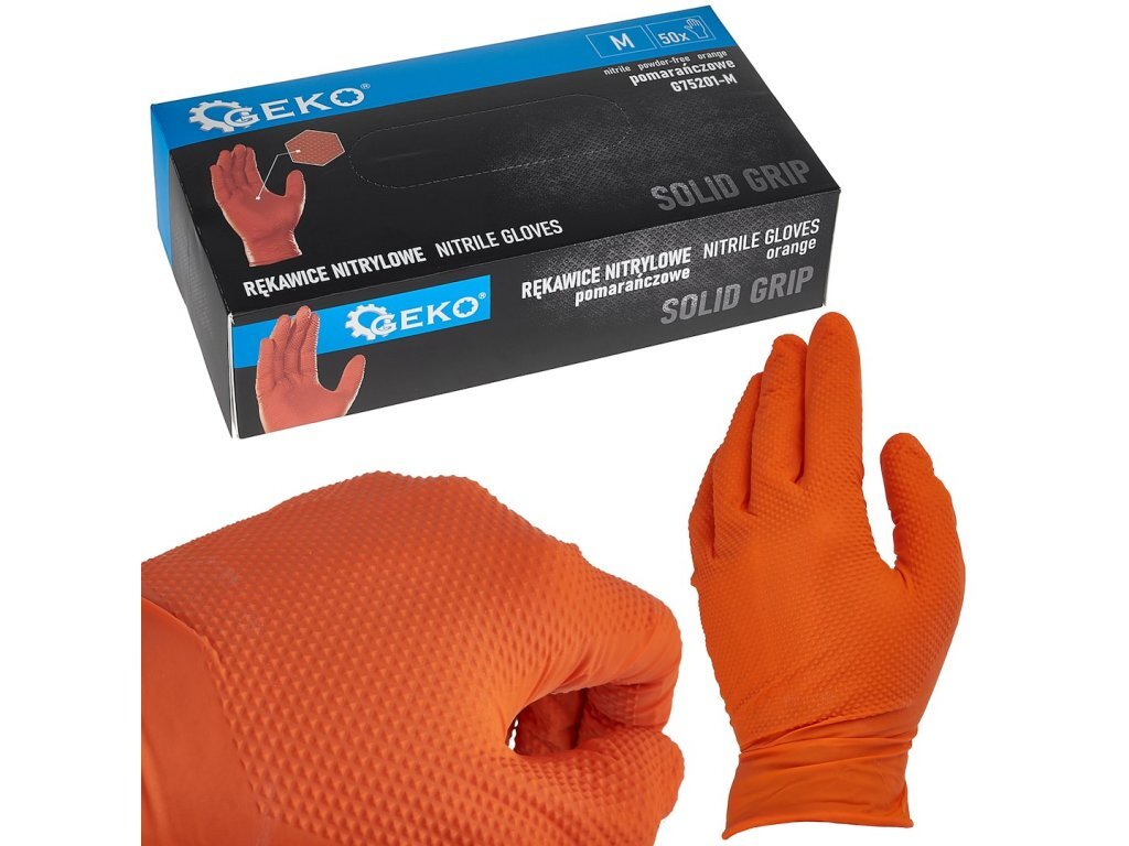 Nitrilové rukavice Solid Grip 3D, pevné, odolné chemikáliím, 50 ks, oranžové, velikost M - GEKO