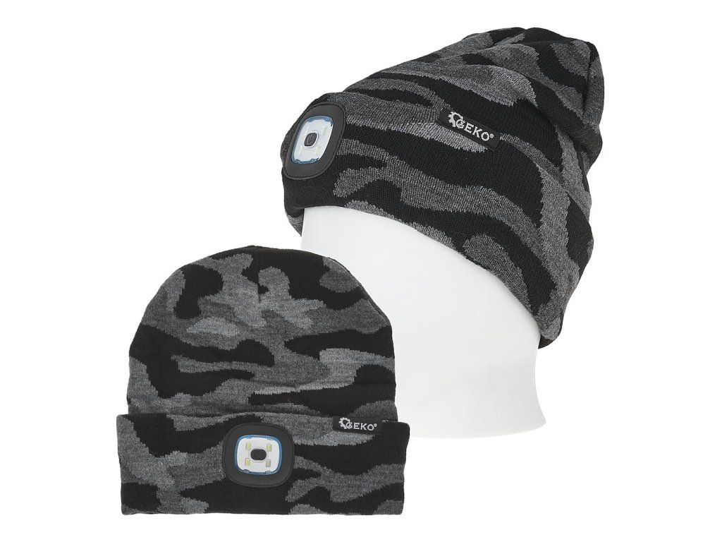 Čepice s LED světlem, USB nabíjení, maskáčová - GEKO